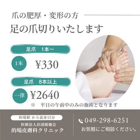 爪の肥厚や変形により、ご自身で爪を切ることが難しいと感じている方、当院では看護師による足の爪切り処置を実施しております。